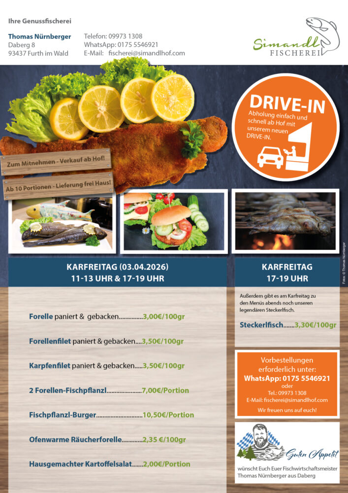Regionale Fischschmankerl, frisch aus unserer Küche. Bequem im Drive-In abholen und daheim genießen.